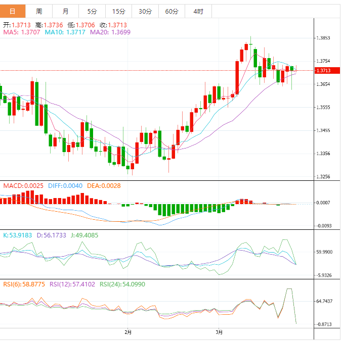 加元技术面:美元兑加元在1.3650找到了坚实的支撑基础,开始明显向上反弹,并测试图表上出现的下降三角形阻力,直到现在仍保持在该阻力之下的盘整,同时明显地出现了正向动量的随机损失。因此,有可能再次下跌并攻击上述支撑线,试图在盘中继续预期的看跌波,其下一个主要目标位于1.3500,注意到突破1.3720将导致价格建立新的看涨波,其目标从1.3815开始,然后是1.3860。