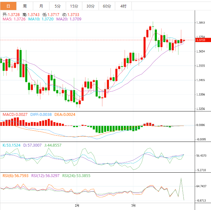 加元基本面:美元/加元在亚市录得当日新低1.3725。其下行可能受到美元疲软以及加央行重启加息希望在强劲的加拿大零售销售数据公佈后上升的推动。在加元方面,乐观的零售销售(2月)数据提高了加拿大央行(BoC)恢复政策紧缩的可能性。今年年初,加拿大央行宣布停止加息,因为它认为目前的货币政策足以控制通货膨胀。加拿大月度零售销售增长1.4%,高于预期0.7%和前值持平。加拿大家庭需求强劲可能迫使企业提高商品和服务价格,可能提加央行进一步加息必要性。