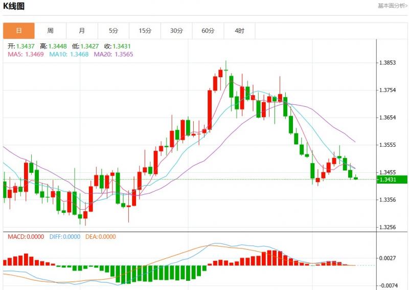周四盘中,美元加元报1.3431,跌幅0.04%。