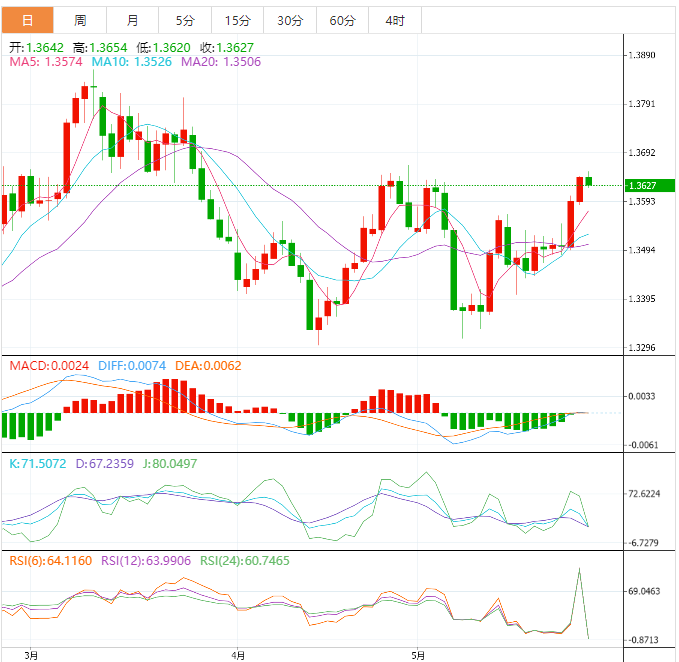 加元基本面:美元/加元自此前的月高点回撤,目前在1.3625附近刷新盘中低点,价格结束两日下跌后多头回归。该货币对自3月28日以来的下降阻力线1.3650附近反转。不过回调行情似乎有限,因为该货币对维持周中对3月初以来关键阻力线的突破,同时MACD信号看涨,且RSI线乐观未超买。