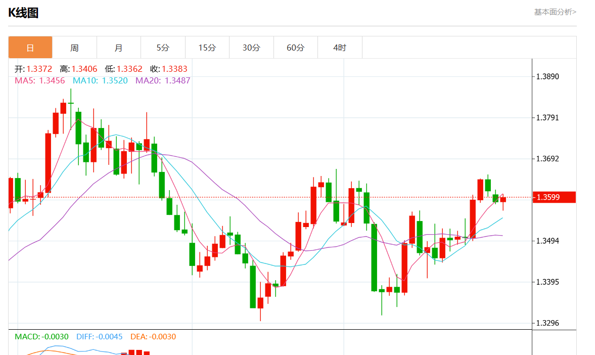 周二盘中,美元/加元最新报1.3604,日图涨0.11%