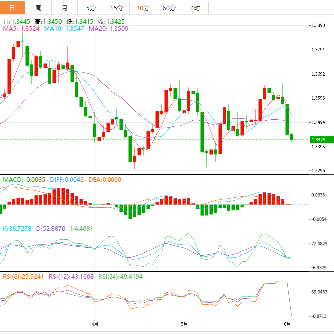 加元技术面:美元兑加元昨天表现出强烈的消极,因为它超过了第一个目标位1.3500,从而确认了在日内延伸看跌波的道路,下一目标位于1.3350。