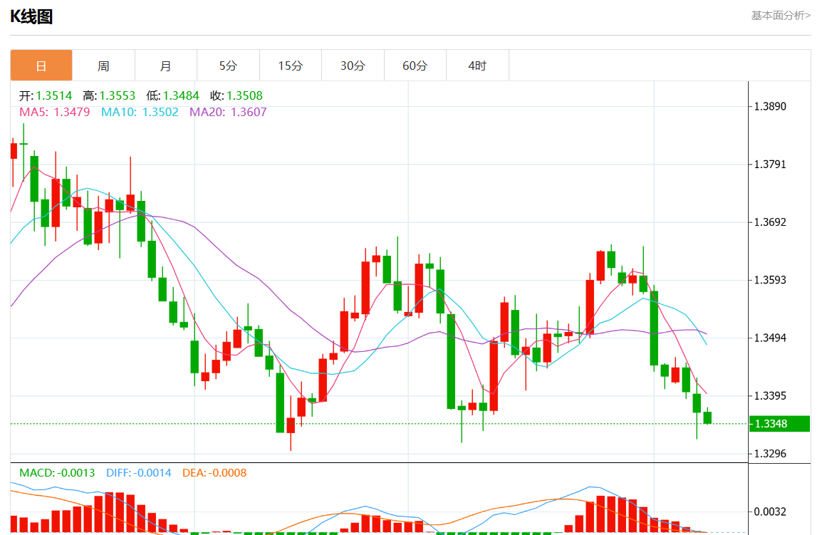 周四盘中,美元/加元最新报1.3348,日图跌0.14%