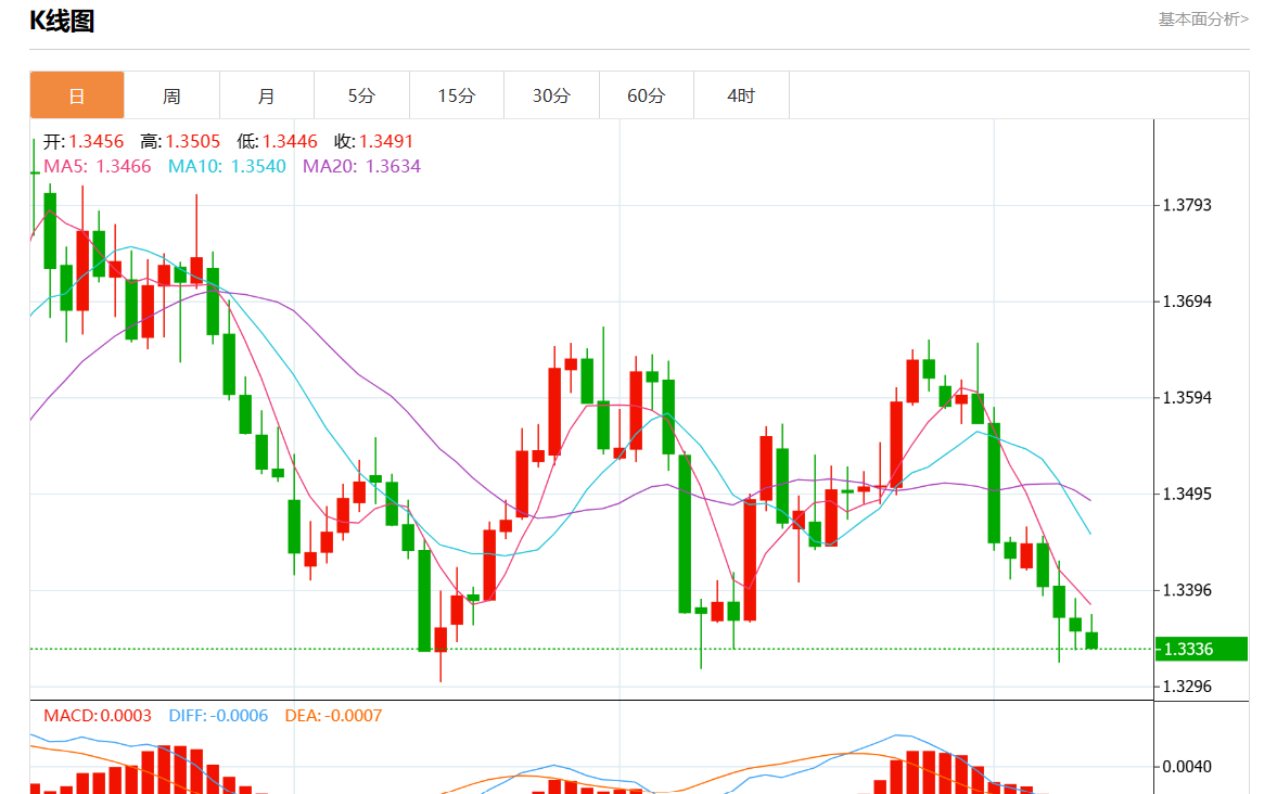 周五盘中,美元/加元最新报1.3335,日图跌0.15%