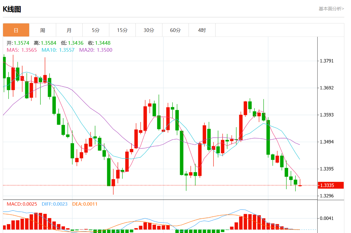 周一盘中,美元/加元最新报1.3336,日图跌0.02%