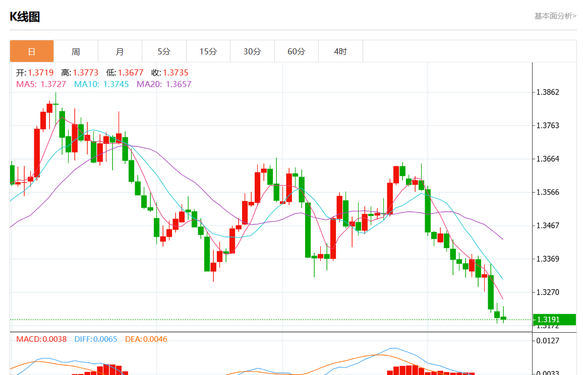 周一盘中,美元/加元最新报1.3191,日图跌0.03%