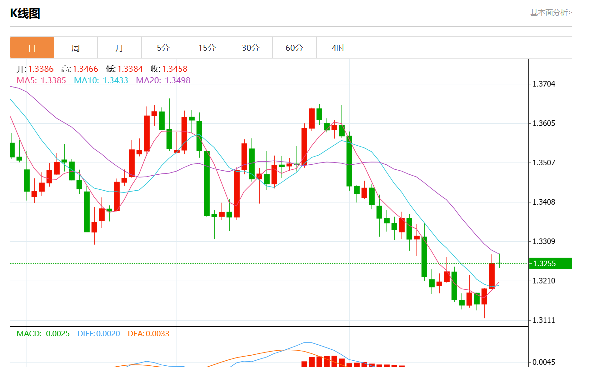 周四盘中,美元/瑞郎最新报1.3259,日图涨0.03%