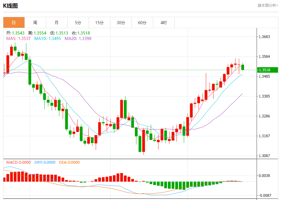 预计今天的交易区间在1.3485支撑和1.3600阻力之间。