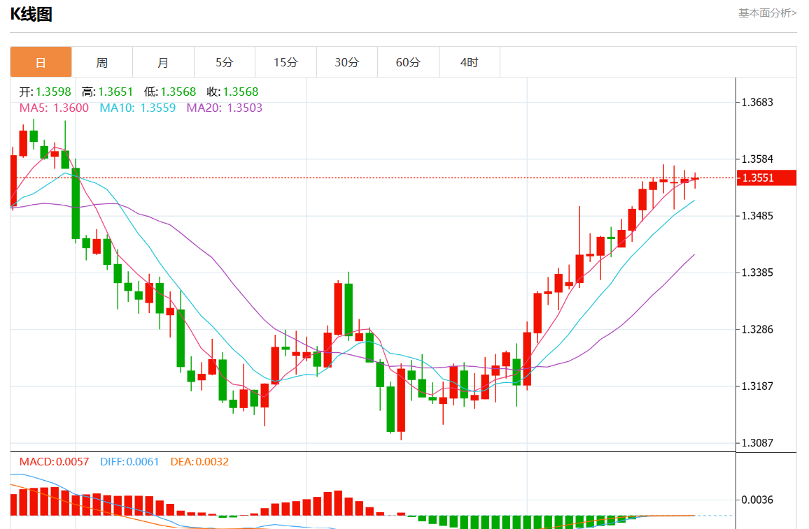 周三盘中,美元/加元报1.3550,涨幅0.01%。