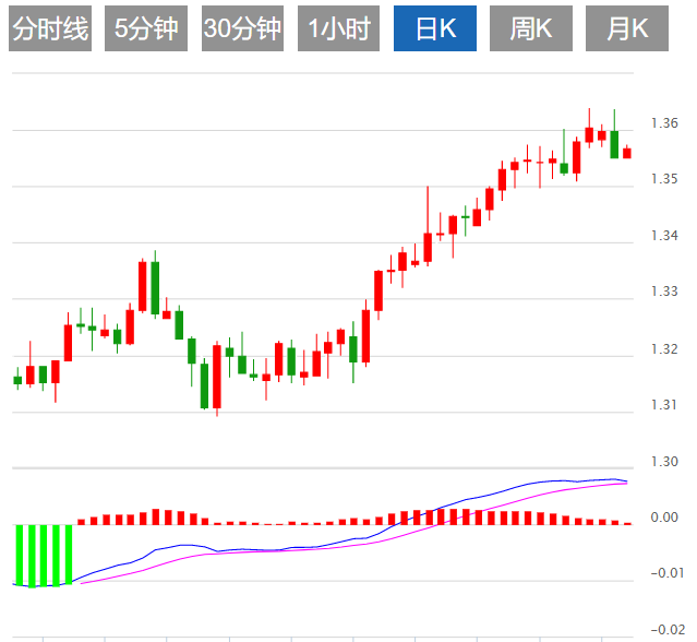 今日预期交易区间在13500个支撑位和1.3640个阻力位之间。