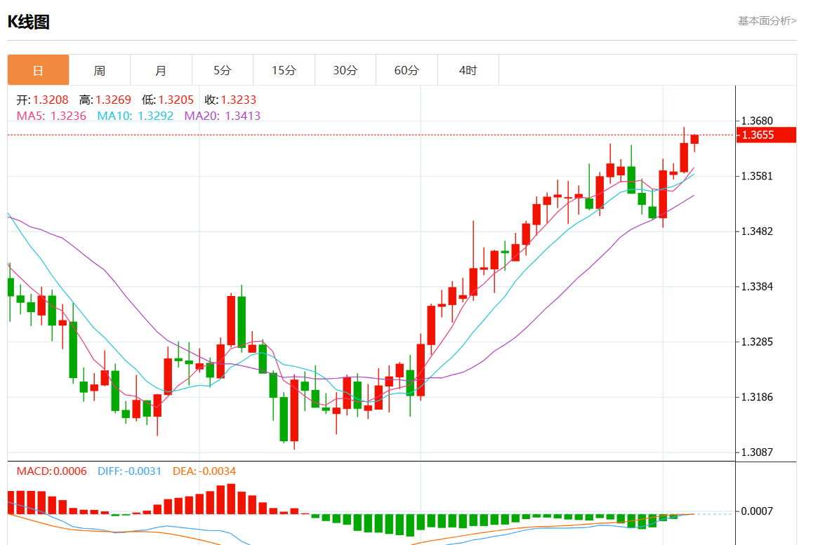 周三盘中,美元/加元报1.3652,涨幅0.08%。