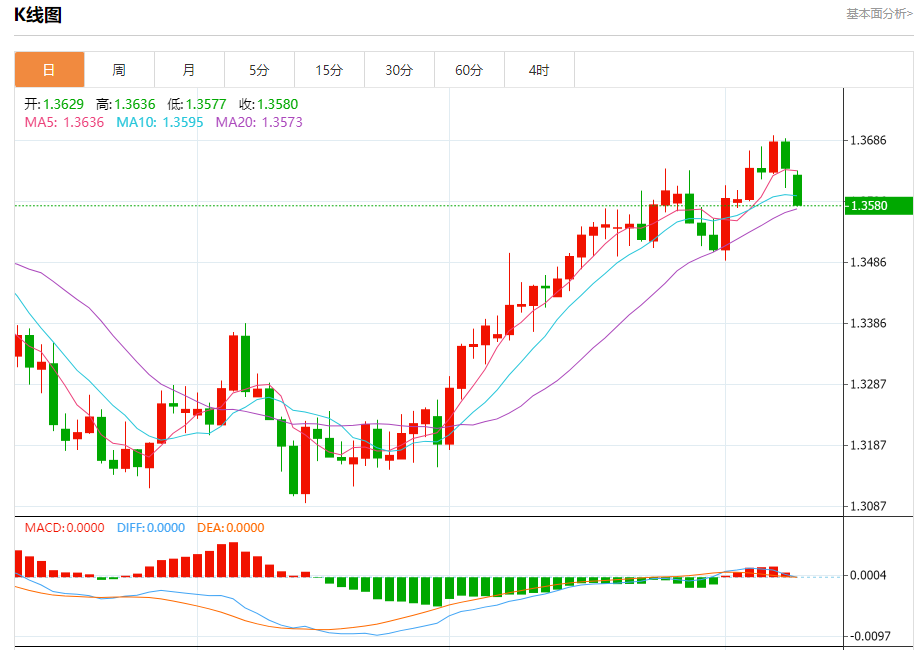 今天的预期交易区间在1.3550支撑和1.3680阻力之间。