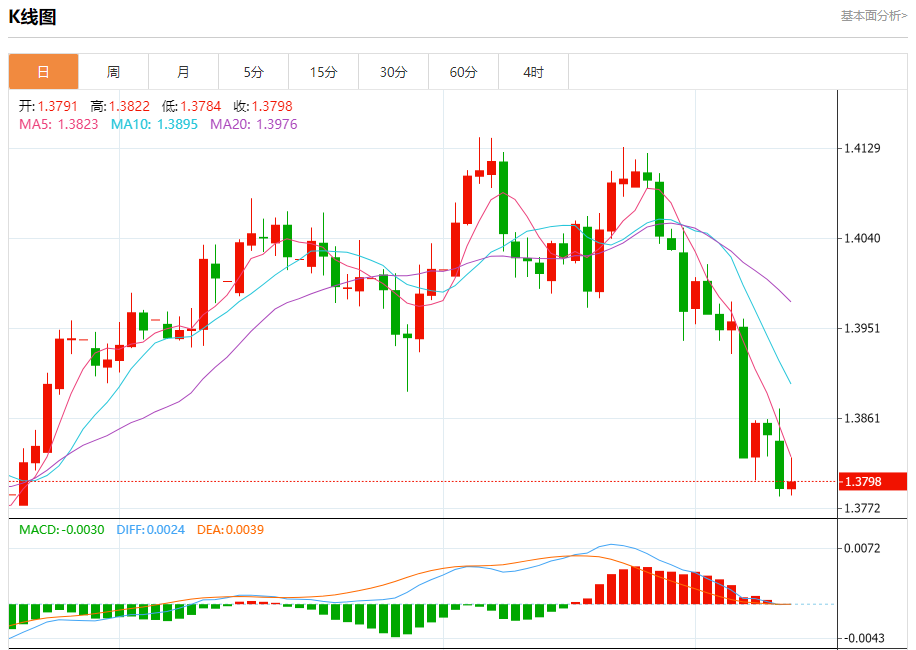 今天的预期交易区间在 1.3660 美元支撑位和 1.3800 美元阻力位之间。