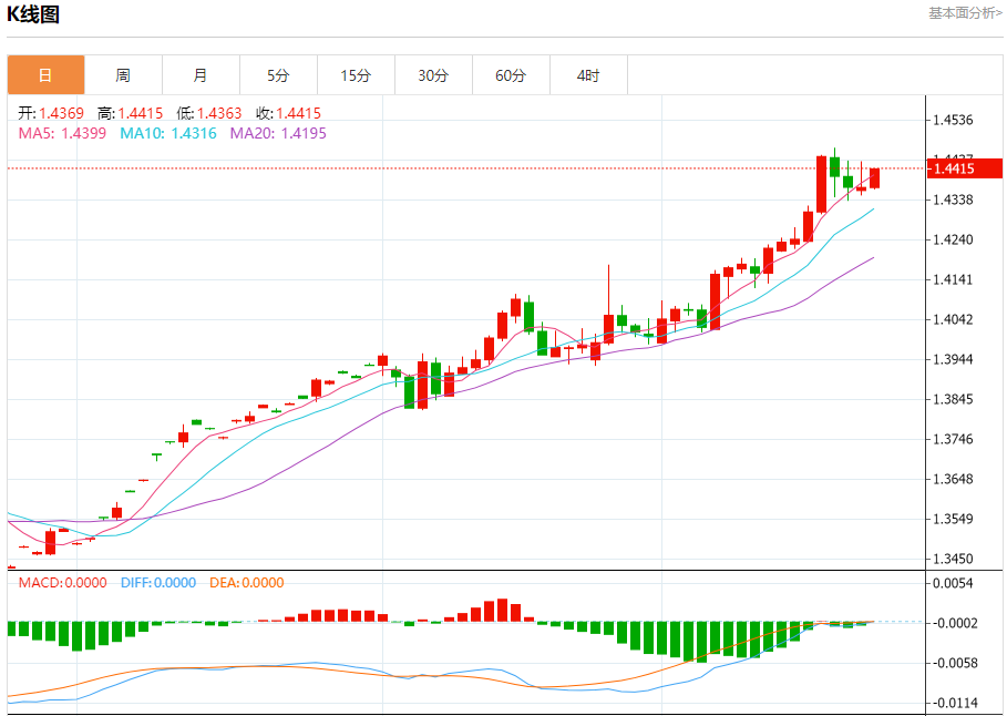 今天的预期交易区间在1.4310美元支撑位和1.4430美元阻力位之间