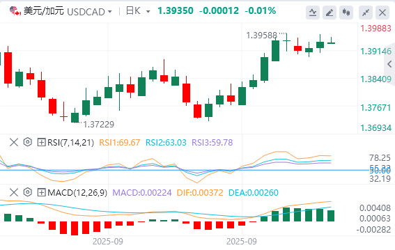 技术图显示,在1.3960(9月26日、10月1日低点)上方可能出现双顶,这是趋势转变的常见模式。在4小时图中,相对强弱IIndex(RSI)的看跌背离支持了这一观点。