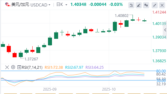 相反,上行尝试可能会在周三的高点1.4060和10月14日的高点1.4080附近遇到阻力。成功突破这些水平将使9月底牛市的161.8%斐波那契扩展位1.4145成为焦点。