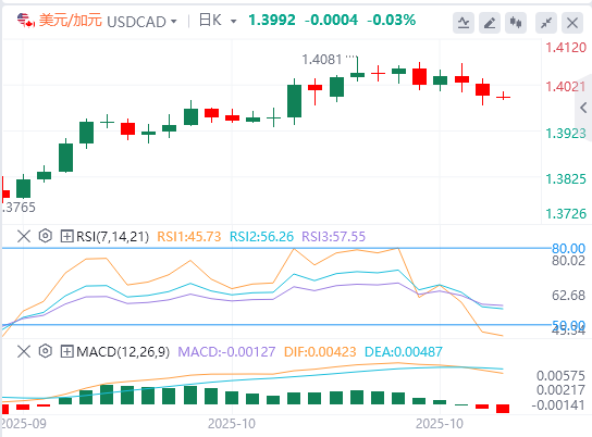 上行方面,初步阻力位出现在心理水平1.4000,随后是9日均线1.4009。突破该水平将改善短期价格动能,并促使美元/加元接近10月14日触及的六个月高点1.4079。突破该水平将支持该货币对探索上升通道上限1.4140附近的区域。