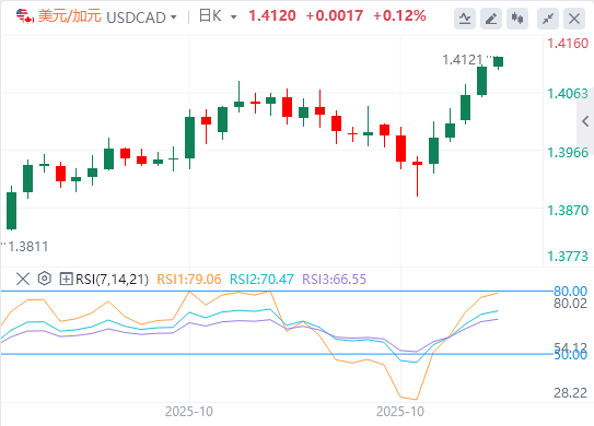 美元/加元在亚洲时段早些时候触及七个月新高1.4120。进一步的进展可能会探索上升通道上边界1.4220附近的区域。