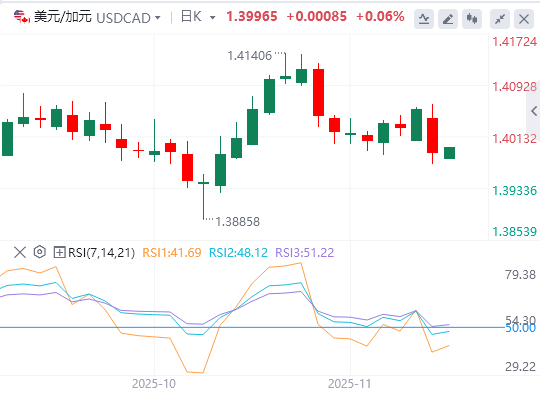 美元兑加元从11月初在1.4140附近的高峰回落,加拿大元兑美元收复失地。该货币对回落至中区,目前徘徊在1.3980上方,接近50日指数移动平均线1.3967。200日指数移动平均线(EMA)位于1.3909,仍位于当前价格走势下方。