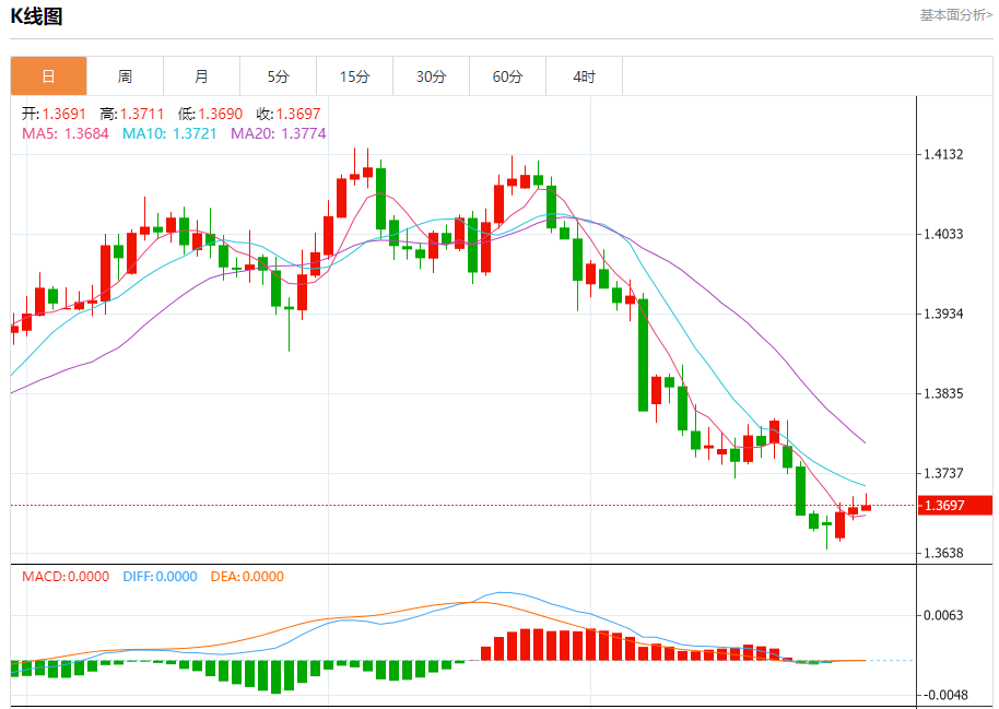 美元兑加元今日汇率最高1.3702 ,最低1.3700 ,涨跌0.0006,涨跌幅0.04% 。