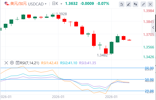 相对强弱指数(RSI)位于43,位于50中线以下,强化了谨慎基调,但没有超卖条件。与此同时,38.2%的斐波和回调位位1.3651起作用,若果断突破,将为1.3704(50%回撤)打开空间,这将终结反弹尝试。若在该障碍下被拒绝,反弹将保持浅层,重点是保持200期均线以上牵引力,以避免新一轮下行压力。