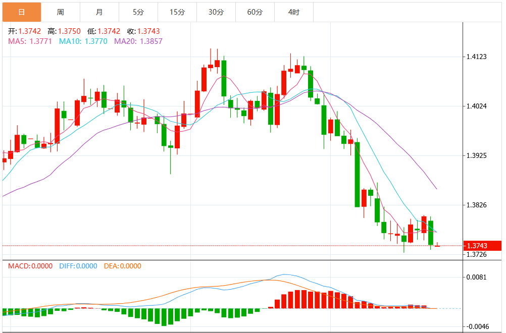 周三亚盘,美元/加元震荡下行,徘徊于1.3679附近,加元在周二连续第二天上涨,对美元上涨0.44%,并在周一的0.34%涨幅基础上继续攀升。美元/加元对已跌至1.3700以下的22周低点,使得美元-加元对进一步进入超卖区域。本周经济数据日程上几乎没有其他内容,市场动态在假期和周三开始的交易周早期关闭之前不太可能发生变化。