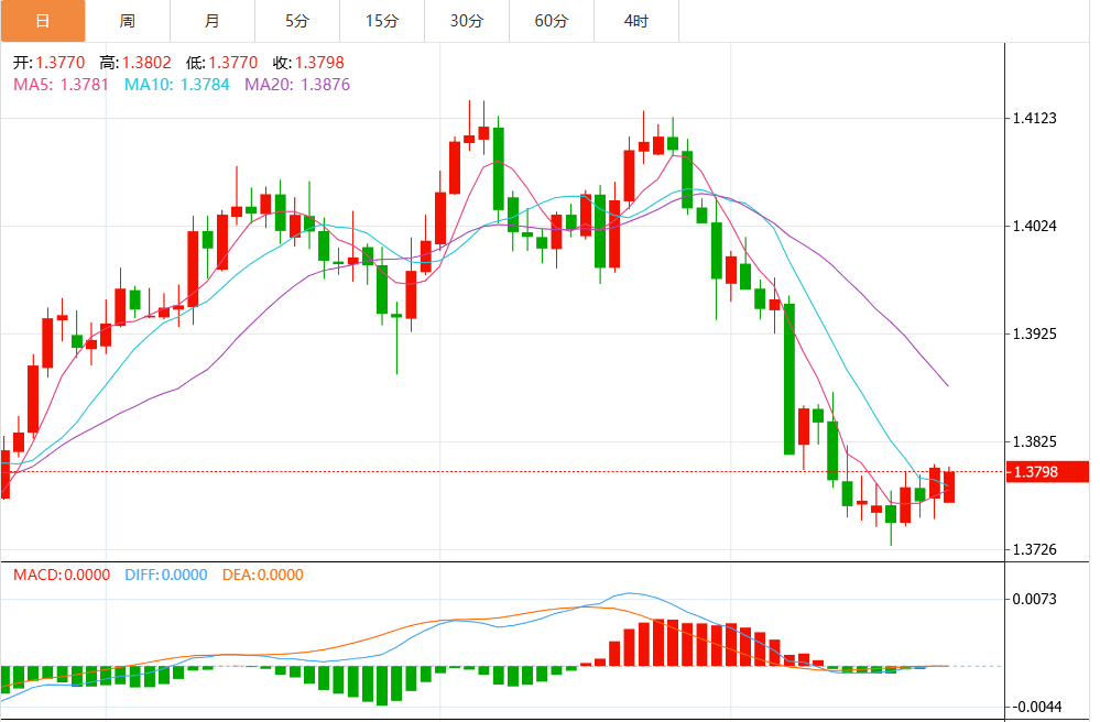 12月22日,美元/加元汇率在周一欧洲早盘交易时段中,稳健徘徊在周五高点1.3800附近。随着加元(CAD)在家庭消费担忧加剧中表现不佳,加元货币对显示出强劲表现。 周五,加拿大统计局报告称,零售销售——衡量消费者支出的关键指标——十月同比下降0.2%,而预计保持持平。9月份,消费者支出指标也下降了0.9%。 家庭需求