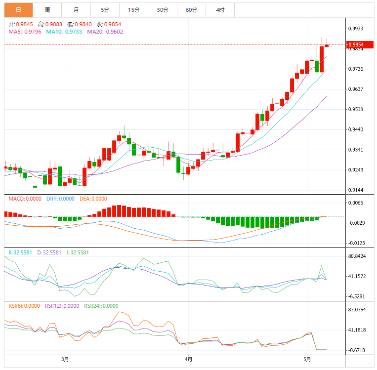 技术面上,美元兑瑞郎未能突破0.9695水平,强势反弹再次重回看涨通道,重拾看涨主轨道,继续上攻0.9945。
