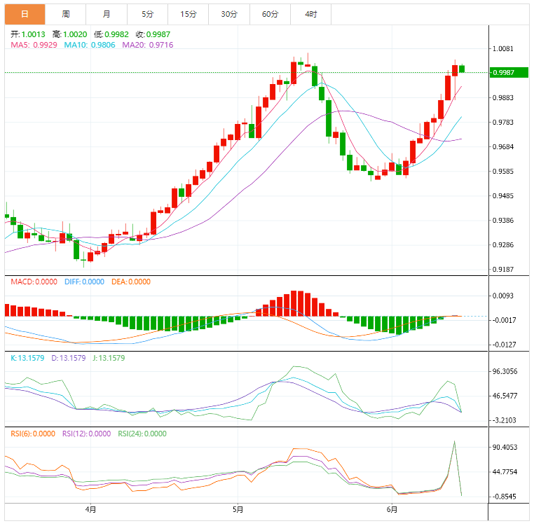 技术面上,美元兑瑞郎昨日强势上扬并试图突破1.0000关口,以支持继续主要看涨趋势的预期,其下一目标位于1.0064。