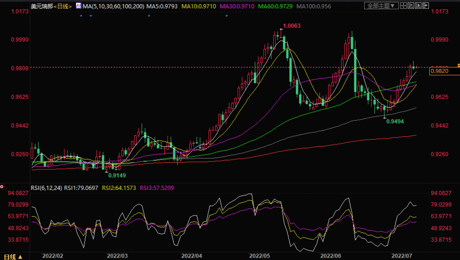 基本面上,美元兑瑞郎从6月29日触及的0.9500下方反弹了350个点,而这一强劲上涨是由持续的美元买盘支撑的。对美联储将保持积极的紧缩政策路径的预期继续支撑美元,并将其推至20年新高。这一价格走势支持了近期美元兑瑞郎进一步升值的前景,不过交易员可能更愿意等待周三美国消费者通胀数据的发布。与此同时,在美国缺乏相关经济数据的情况下,美元的价格动态将在影响美元兑瑞郎方面发挥关键作用。