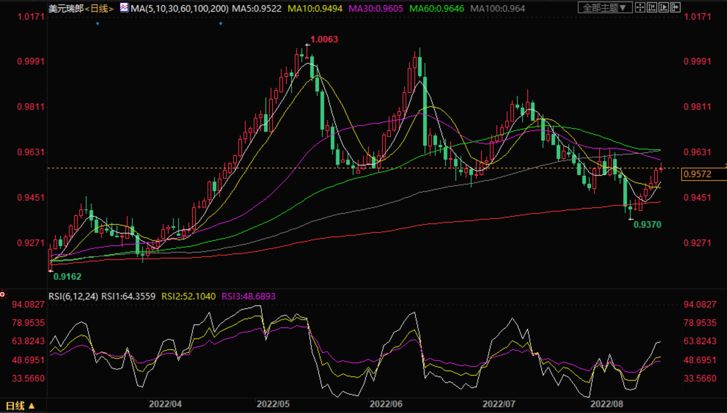 技术面上,美元兑瑞郎明显突破0.9530水平,为盘中进一步上涨开辟道路,下一个利好目标为0.9630水平。
