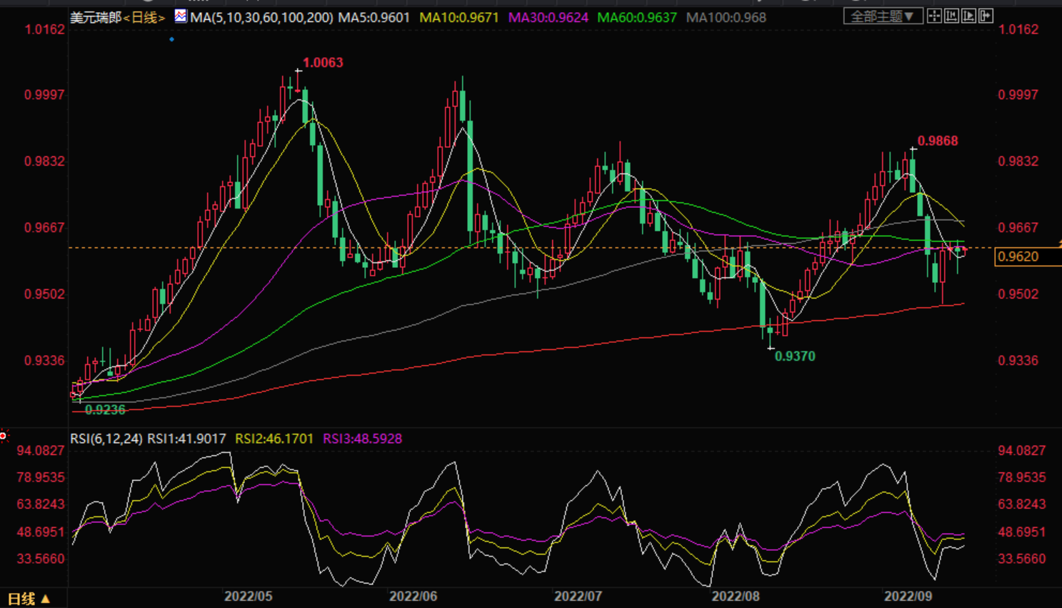 在此过程中,瑞郎(CHF)守住了前一天从7 - 8月下行的38.2%斐波那契回撤水平(Fibo.)(约0.9570)的反弹,目标是50日移动均线阻力位,截止发报时接近0.9640。