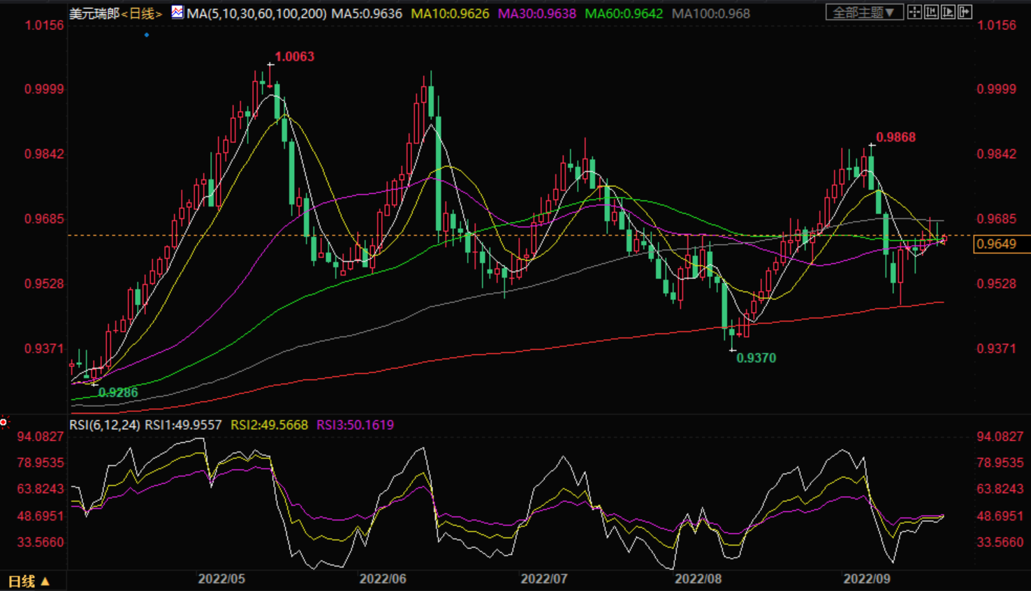 基本面上,美元兑瑞郎在0.9625-0.9650的窄幅区间内波动。由于美联储公布利率决议前美元指数波动不大,该资产表现平平。从更广泛的层面看,该资产自0.9680下跌后转为横盘。未能突破两周高点0.9700推动该资产下跌。瑞郎方面,瑞士央行利率决议也将受到关注。瑞士8月通胀率温和上升至3.5%。考虑到市场共识,瑞士央行行长乔丹将宣布加息75个基点,这将推动利率水平进入0.5%的积极区域,这将是10年来首次。