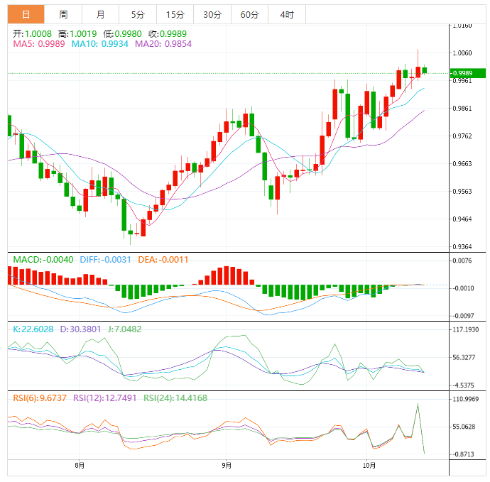 因此,支撑位位于20日移动均线0.9853,随后是10月的低点6 0.9780,高于9月的低点0.9737。