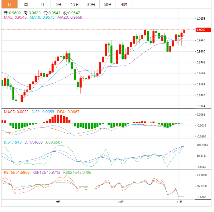 基本面上,美元/瑞郎从1.000区域回撤,迄今创下0.9925的盘中低点。美联储将联邦基金利率提高了75个基点,符合预期,连续第四次上调利率后,美联储将联邦基金利率上调至3.75%-4.00%范围。美联储还重申,加息对于将通胀率恢复到2%的水平是必要的,即便美联储对最新支出和生产指标表明经济增长温和提出警告。