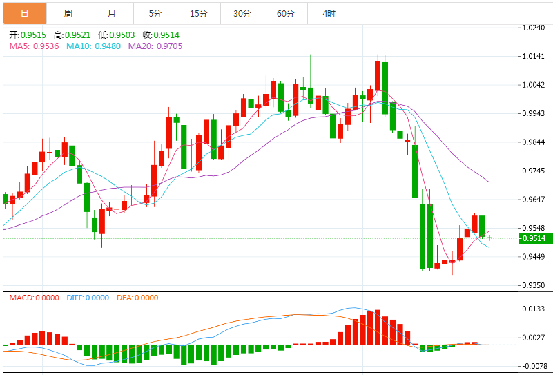在此之后,0.9400整数关和月线低位0.9355附近将构成支撑目标。另外,上述通道支撑线在0.9530附近构成直接阻力位,若汇价突破这一水平,将加剧整理反弹接近通道顶部0.9630附近。