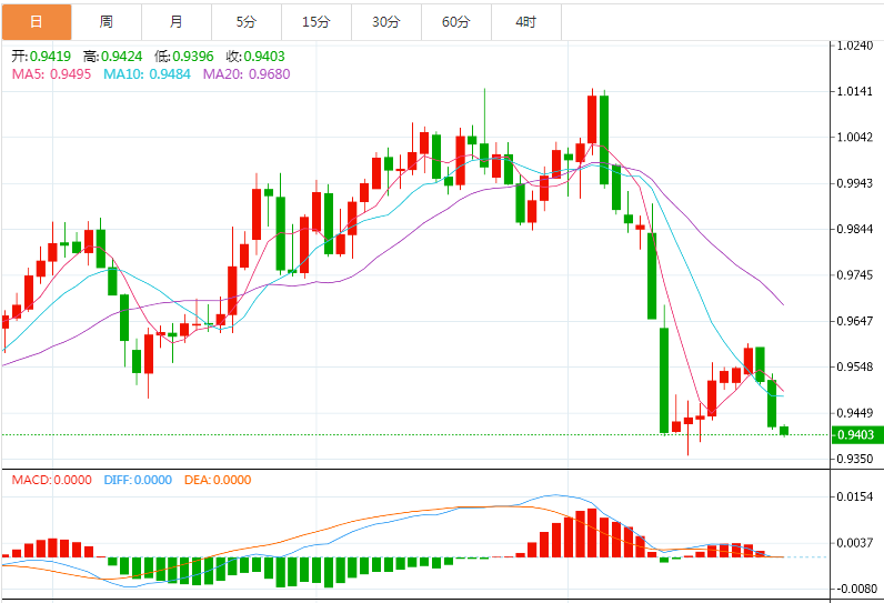 技术上,美元/瑞郎前日结束一周看涨通道,迎来了空头。近期MACD移动平均线(MACD)指标维持看跌,加大汇价下跌倾向。然而,处在0.9495附近的50移动均线。