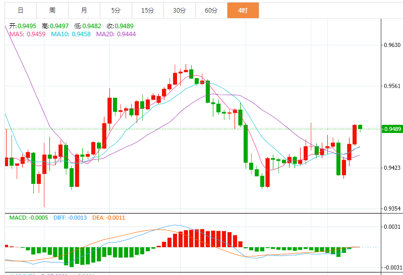 展望未来,如果汇价明确突破0.9500心理阻力,将提振汇价上涨至50指数均线0.9572,然后是11月21日高点0.9600。