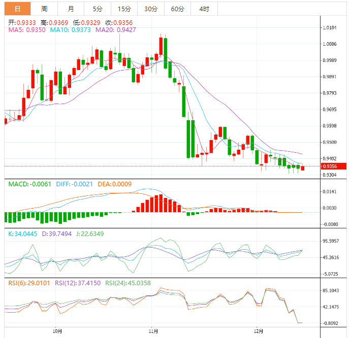 考虑到在0.9355上方盘整将停止负面情景,并导致价格开始新的反弹尝试,除了EMA50形成的负压之外,随机指标明显失去了支持预期下跌的积极势头。