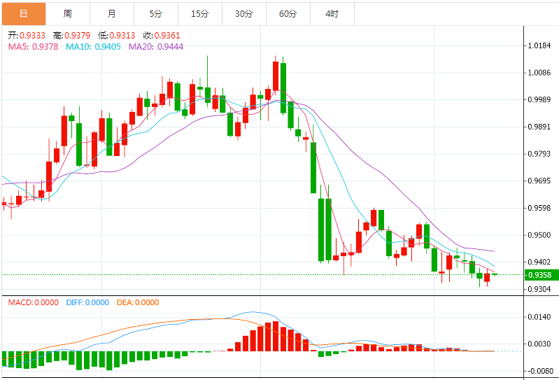 技术上,美元/瑞郎继跌至楔形形态底部后不断上涨,美元/瑞郎维持中性至下行偏向。不过,若美元/瑞郎明显突破上週五的高点0.9381,则可能为挑战0.9400铺平道路。相对强弱指标位于看跌区域,表明空头仍占主导,无论汇价波动率情况,汇价正失去动力。