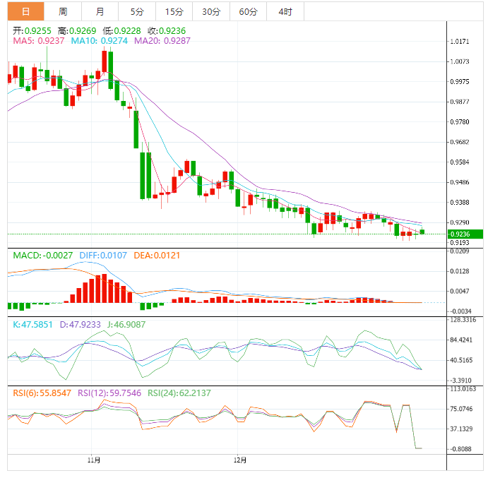 日线图显示该货币对有下行偏见,但似乎也已在0.9200附近触底。自去年12月以来,美元/瑞郎未能跌破0.9200,形成三重底部,为上涨打开了大门,不过自上周以来的低流动性状况使美元/瑞郎无法测试0.9300。相对强弱指数(RSI)仍然处于看跌区域,限制了向0.9300的任何反弹,而变化率(RoC)显示抛售压力正在减弱。