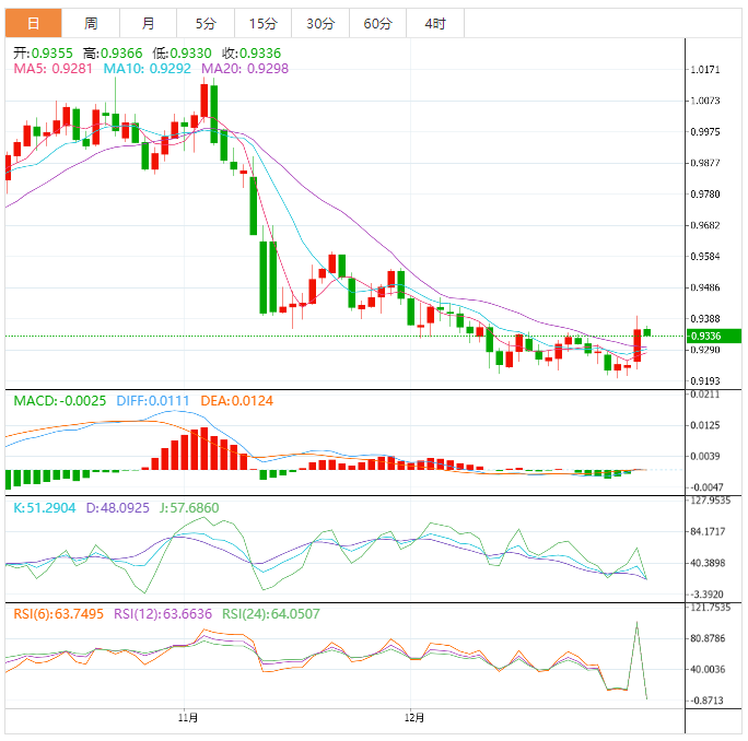 技术上,瑞郎兑美元突破了12月19日高位0.9347绘制的潜在阻力位。经过温和修正后,该资产正在测试突破区域,这将加强上行偏见。