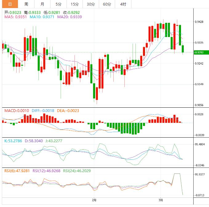 基本面上,瑞士货币(CHF)对描绘了一个被称为“双顶”的看跌图表,标志着未能突破0.9440的障碍。与此同时,看跌的MACD信号也令该货币对卖方保持希望。日内关注非农数据,或将影响瑞郎走势。