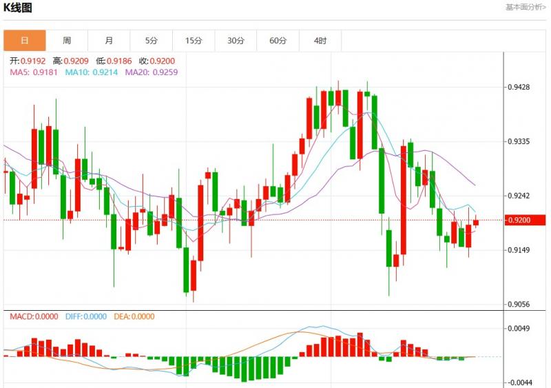 周三盘中,美元瑞郎报0.9201,涨幅0.09%。
