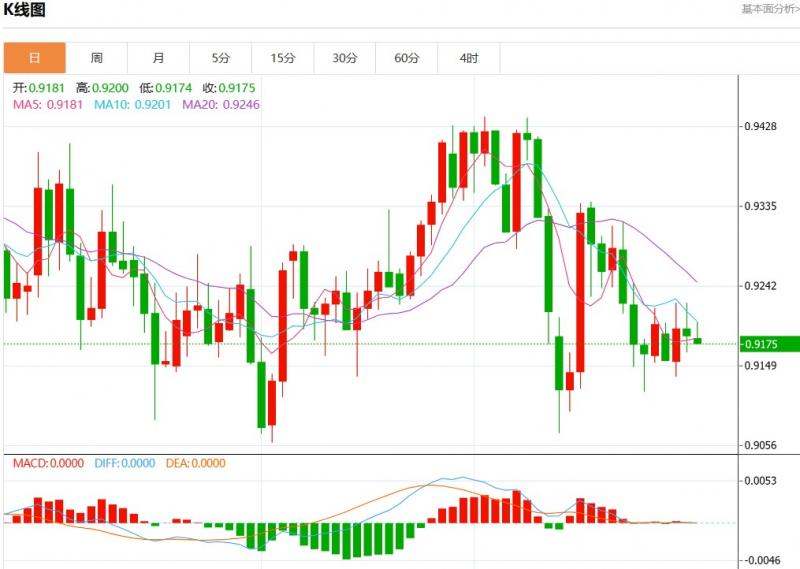 周四盘中,美元瑞郎报0.9176,跌幅0.10%。