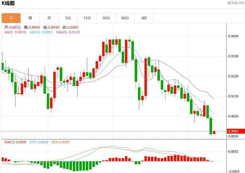 周四盘中,美元瑞郎报0.8965,涨幅0.16%。