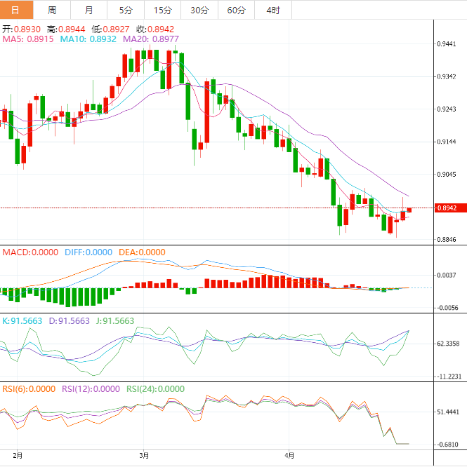 或者,如果跌破4月17日的低点0.8922,该资产将被拖向4月13日的低点0.8860,跌破后者将使该资产暴露于0.8800的圆形支撑位。