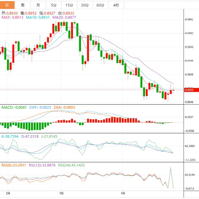 基本面上,美元/瑞郎整理正至0.8930附近后出现反弹。在美国债务上限上调形势欠明朗的情况下,美元/瑞郎出现做多情绪。据彭博社报导,众议院议长麦卡锡表示,如果不处理预算问题,就无法通过上调债务上限的议案。在瑞士国家银行(SNB)主席托马斯·乔丹(Thomas J. Jordan)发表讲话之前,瑞郎将保持震盪。预期乔丹讲话将提供有关未来可能的货币政策行动的信号。