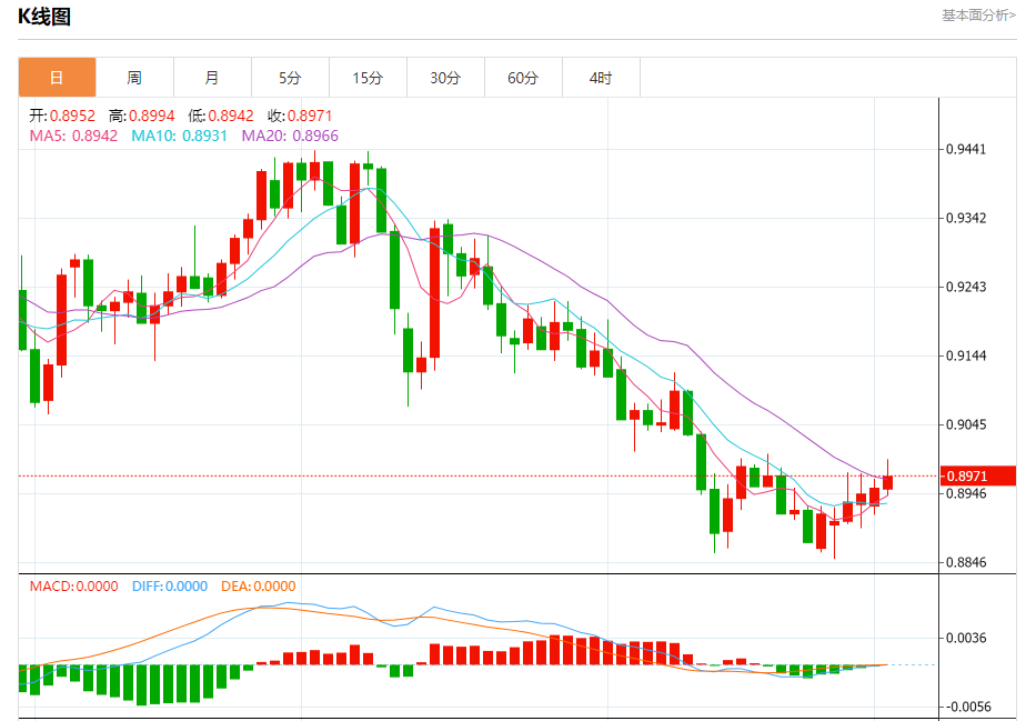周二纽盘,瑞郎兑美元交投于0.8972,涨幅为0.19%。