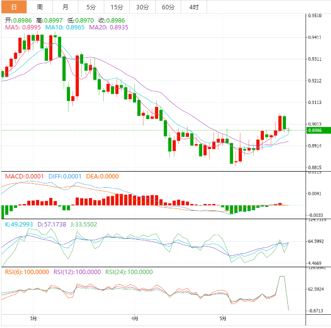基本面上,美元兑瑞郎艰难维持在近期支撑位0.8980上方。瑞郎在回调至心理阻力位0.9000附近后有所回落。在瑞士法郎方面,第一季度工业生产数据将受到密切关注。早些时候,经济数据降至6.1%。随着瑞士国家银行(SNB)提高利率,瑞士经济的通胀压力有所缓解。本周晚些时候,瑞士就业水平数据将受到密切关注。